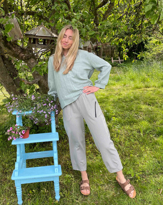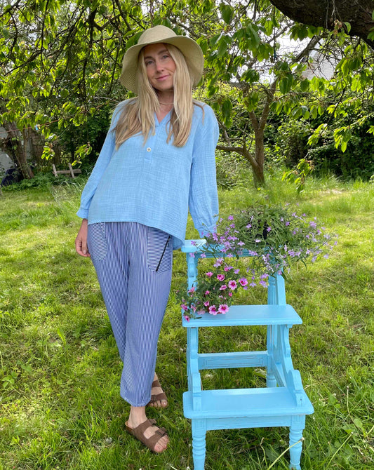 Alle skjorter i naturmaterialer som hør, bomuld, viskose. Der er både lange og korte modeller. Til vinter og til sommer.