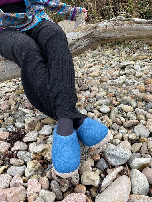UdsolgtBlå filt sutsko