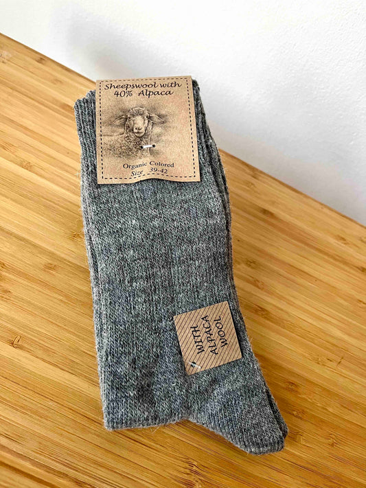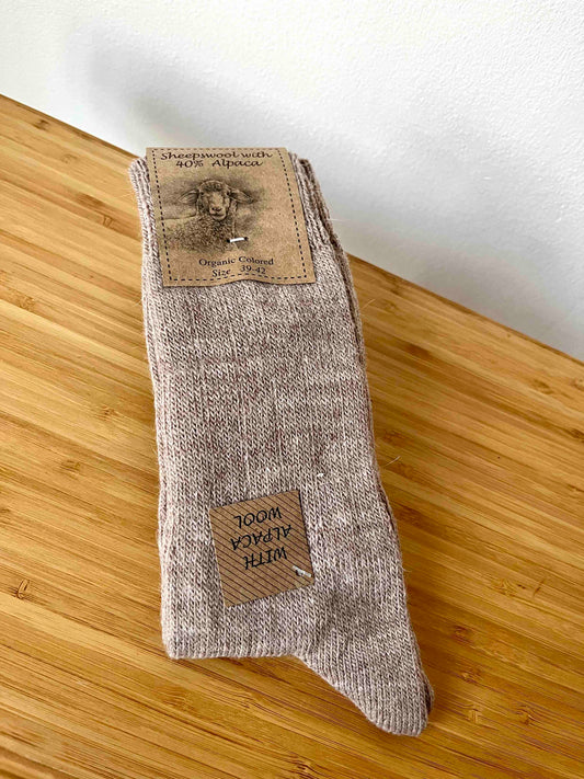 Dejlig varme uldsokker til damer i flotte naturfarver som brun, grå og naturhvid. Sokkerne i uld er tykke uldsokker, der holder dig varm hele vinteren. Når fødderne er varme, er det nemmere at holde på varmen, og derfor er det en god ide at have nogle varme uldsokker på i god kvalitet.