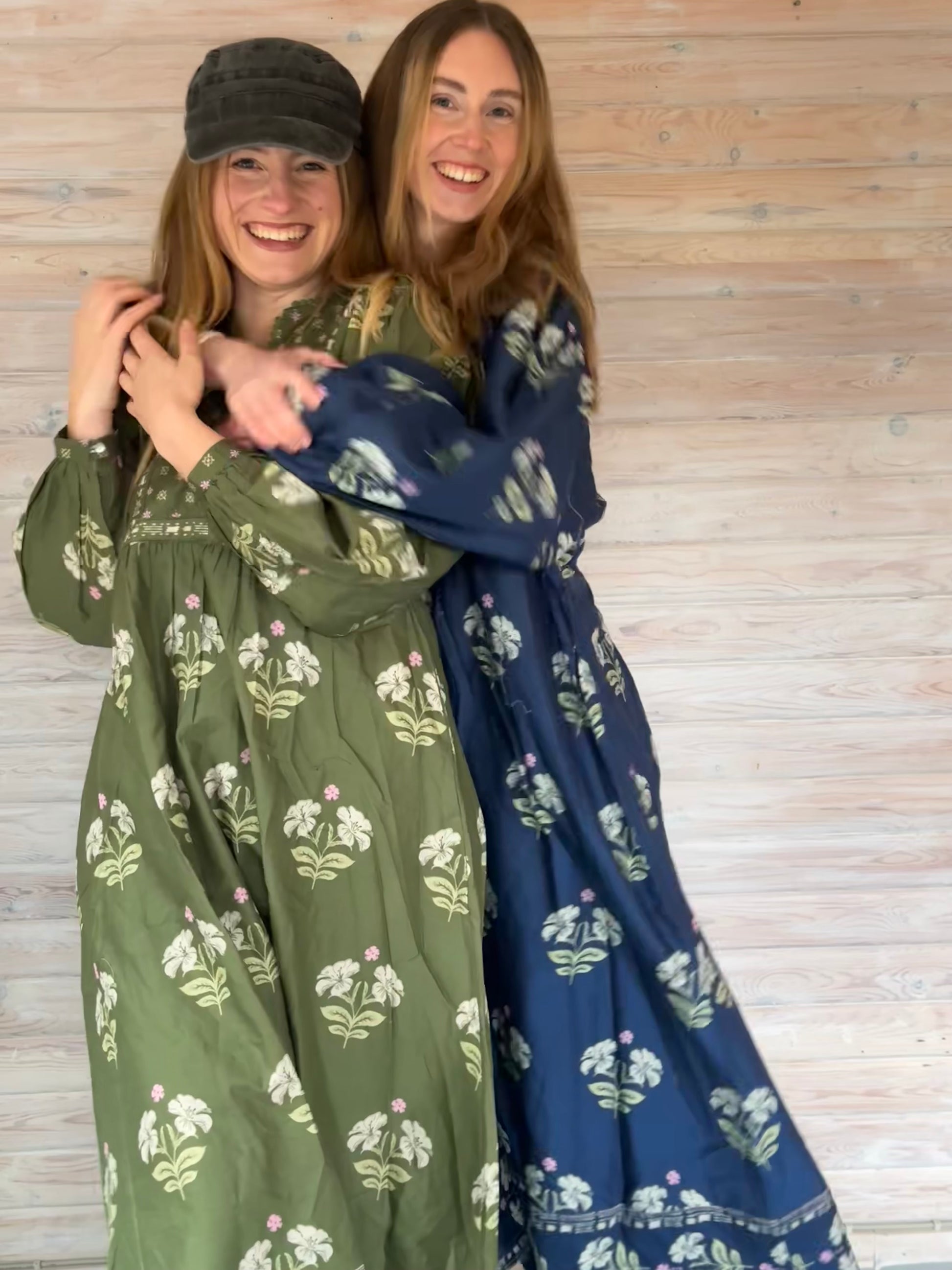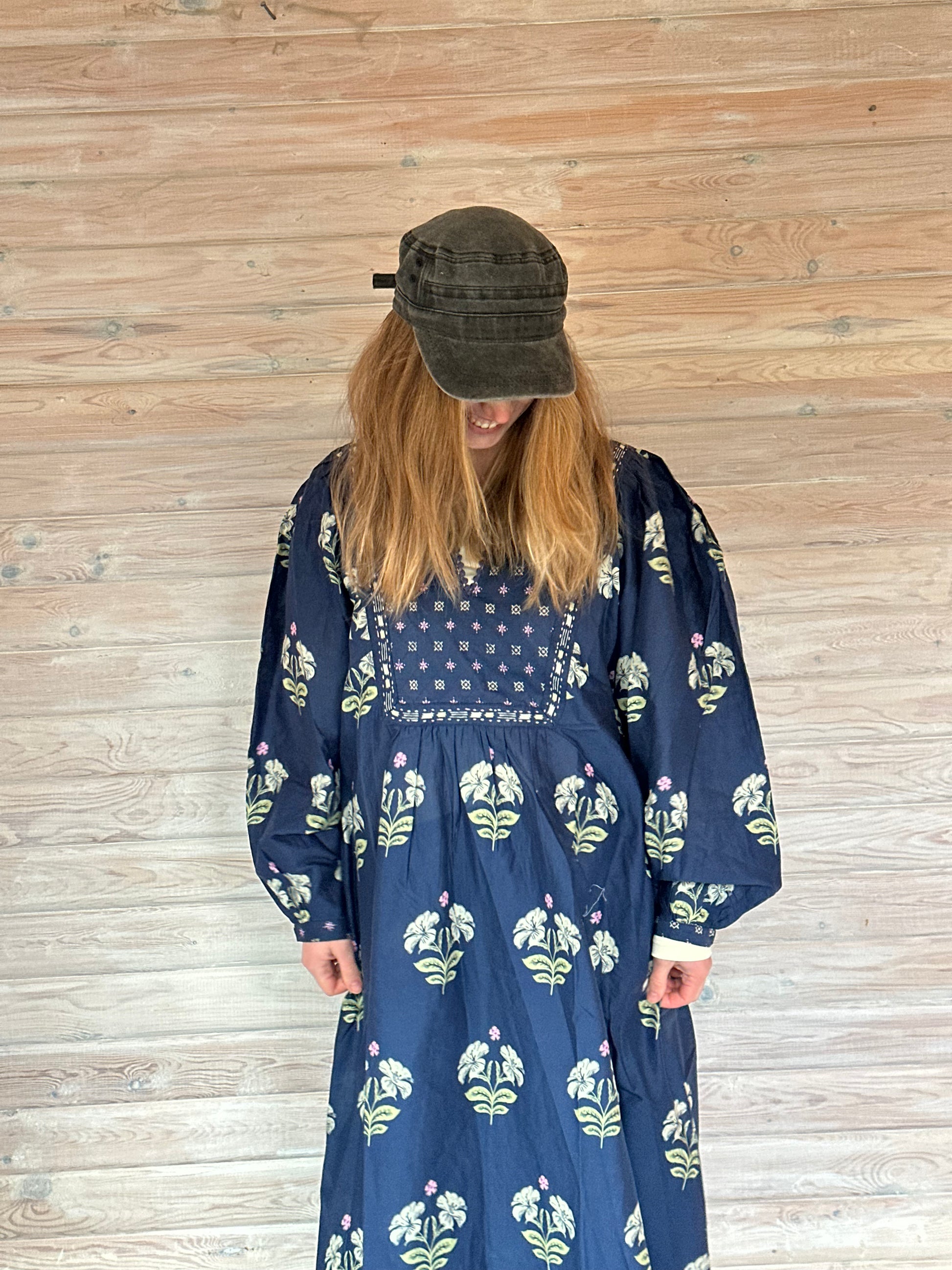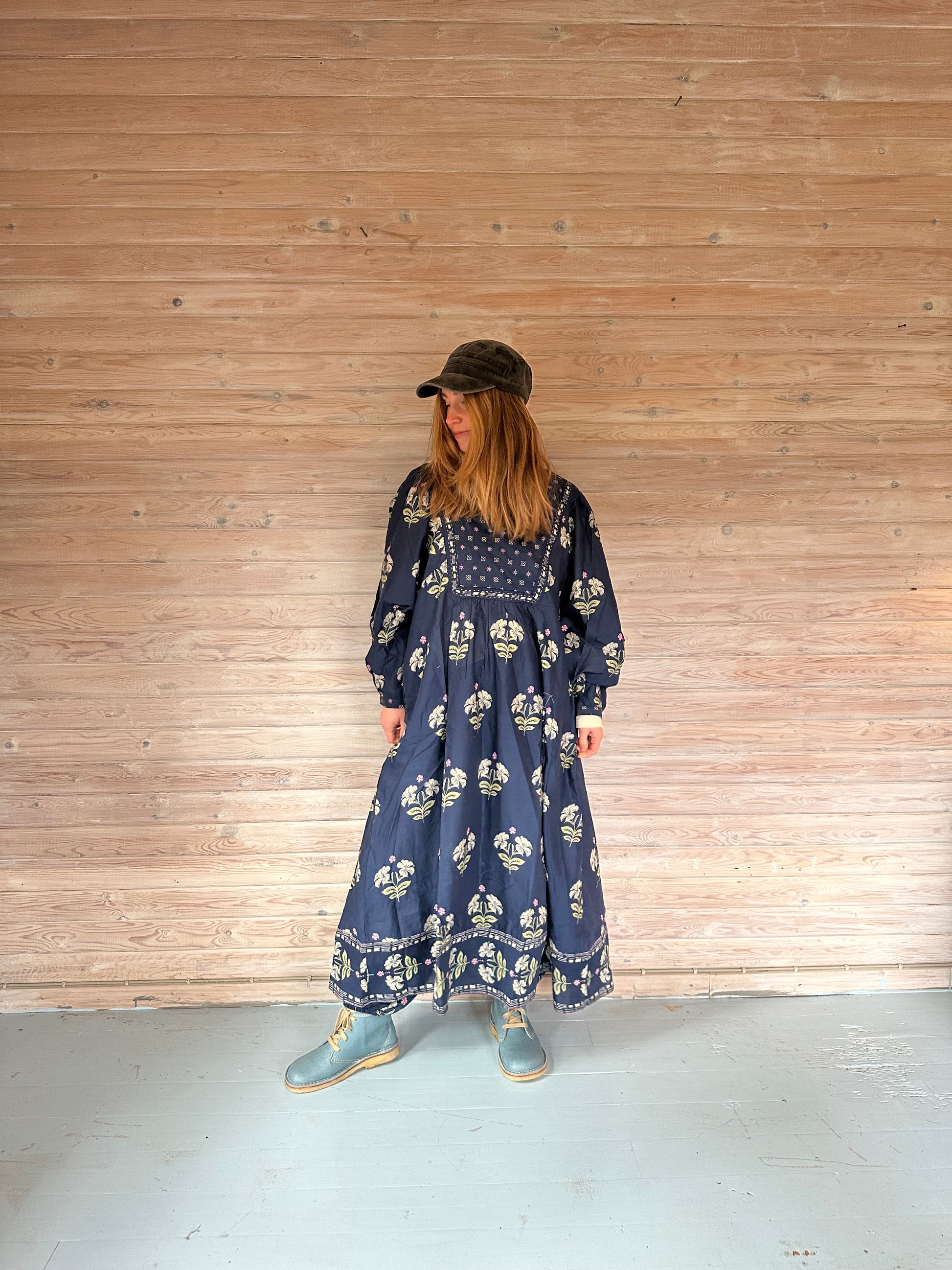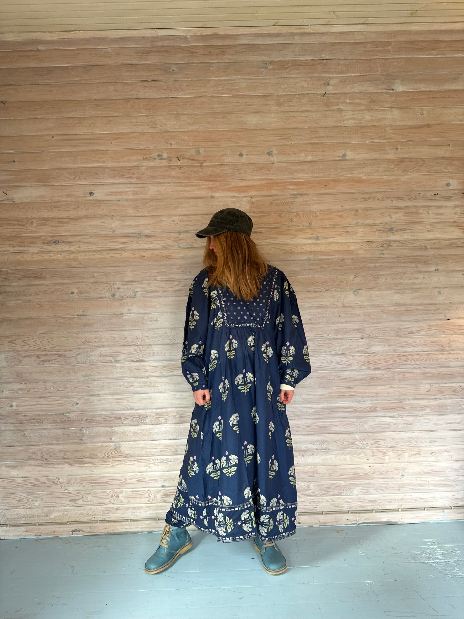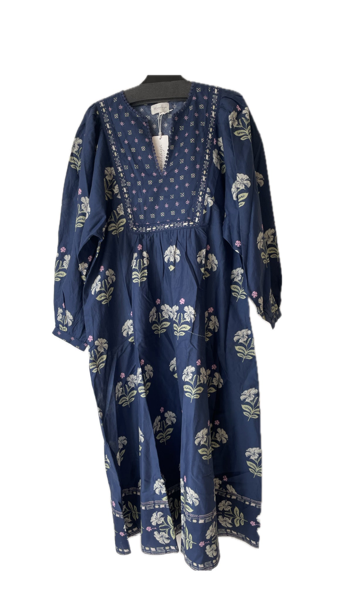 Meget flot lang blå sommerkjole fra Himalya i det flotteste mønster