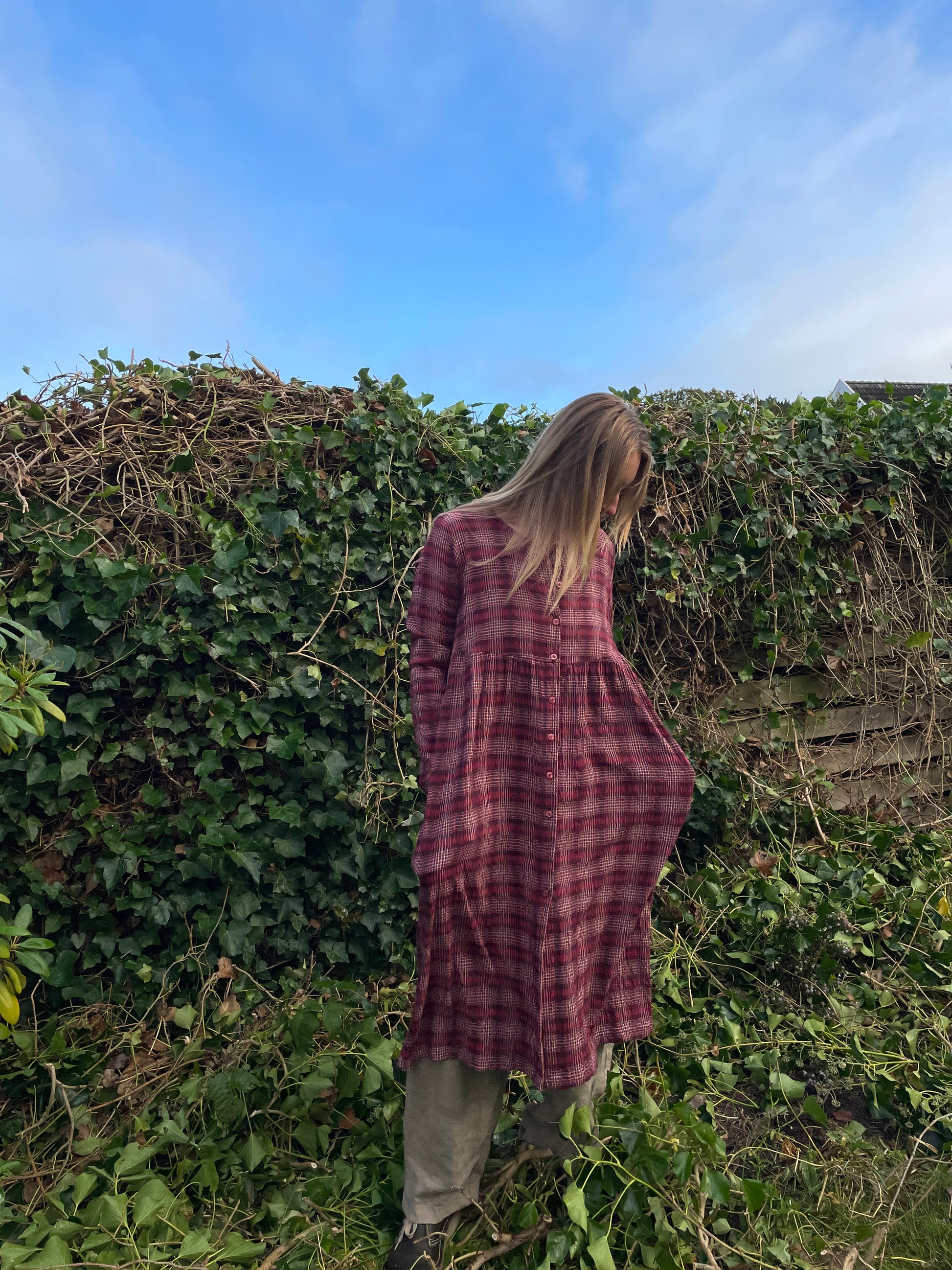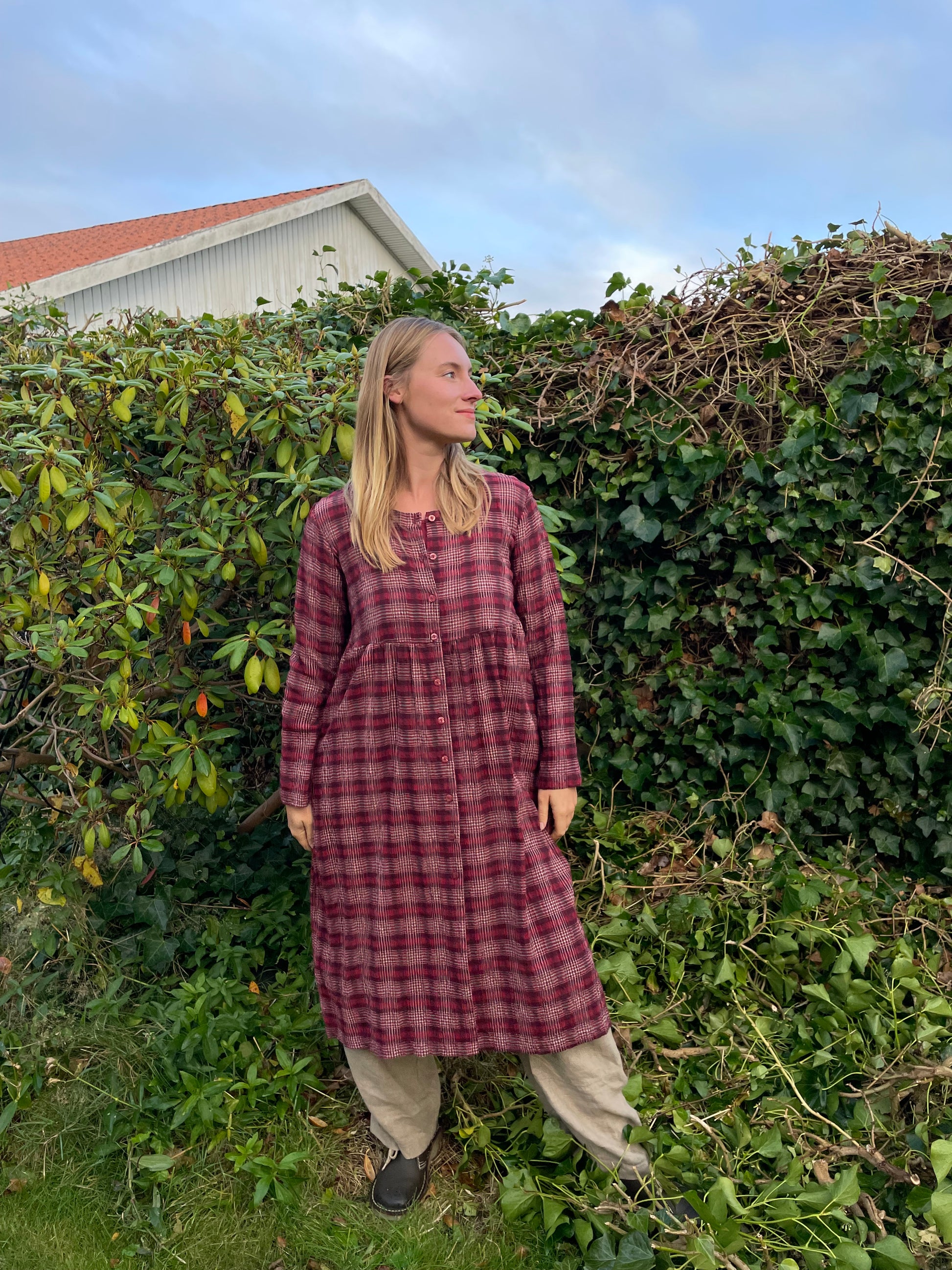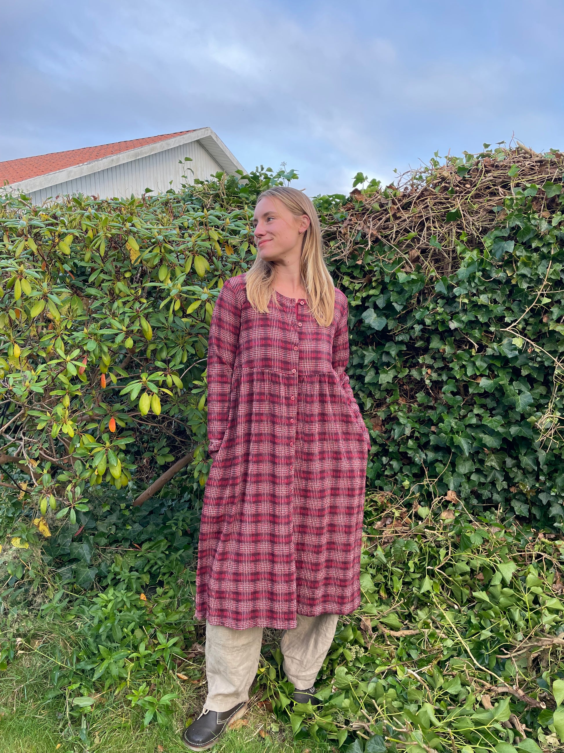 Vores lækre 100% økologiske bommuld fås nu som en smuk rødternet kjole. Fra efterårskollektionen 2025 fra THING