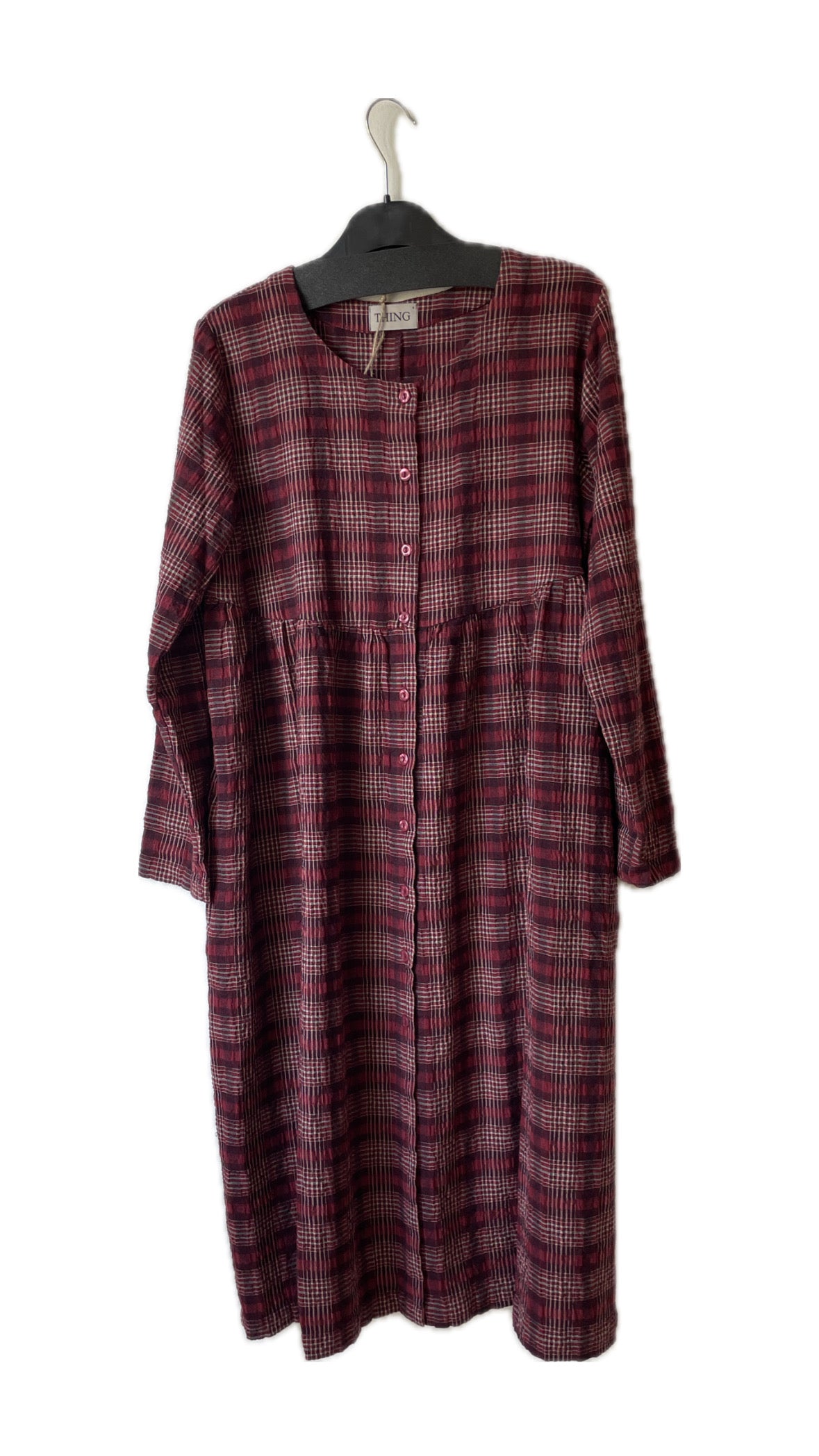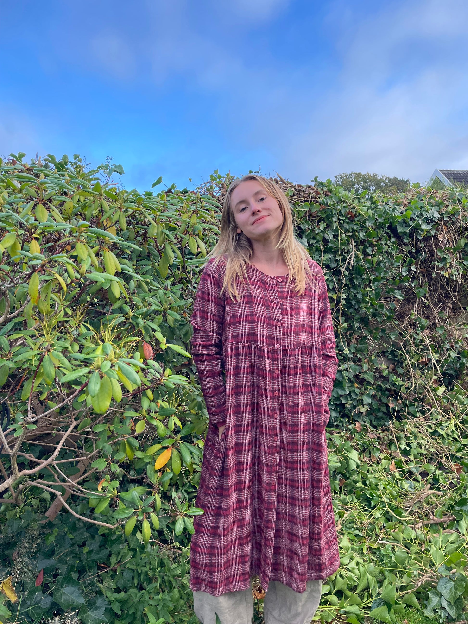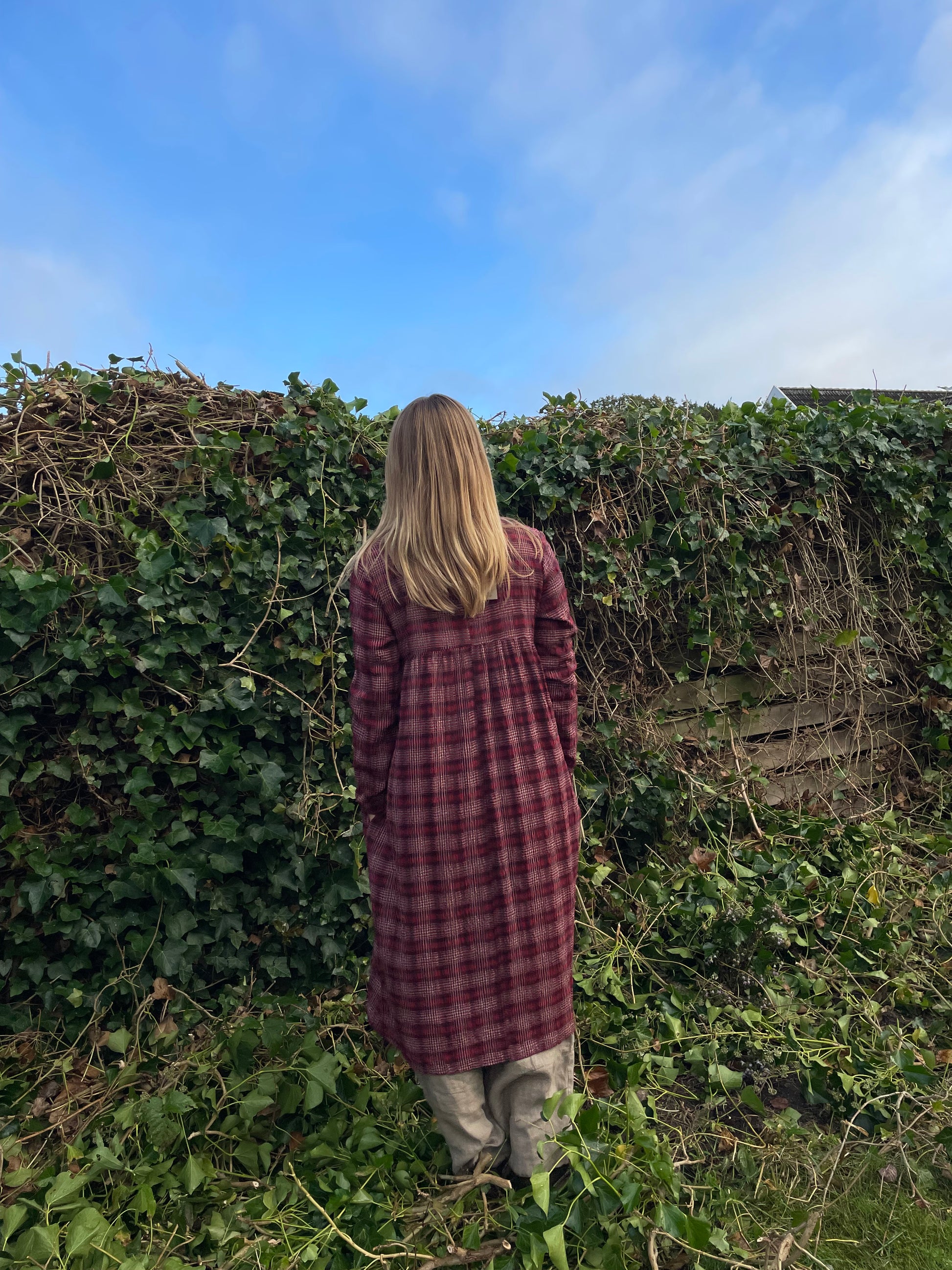 Vores lækre 100% økologiske bommuld fås nu som en smuk rødternet kjole. Fra efterårskollektionen 2025 fra THING