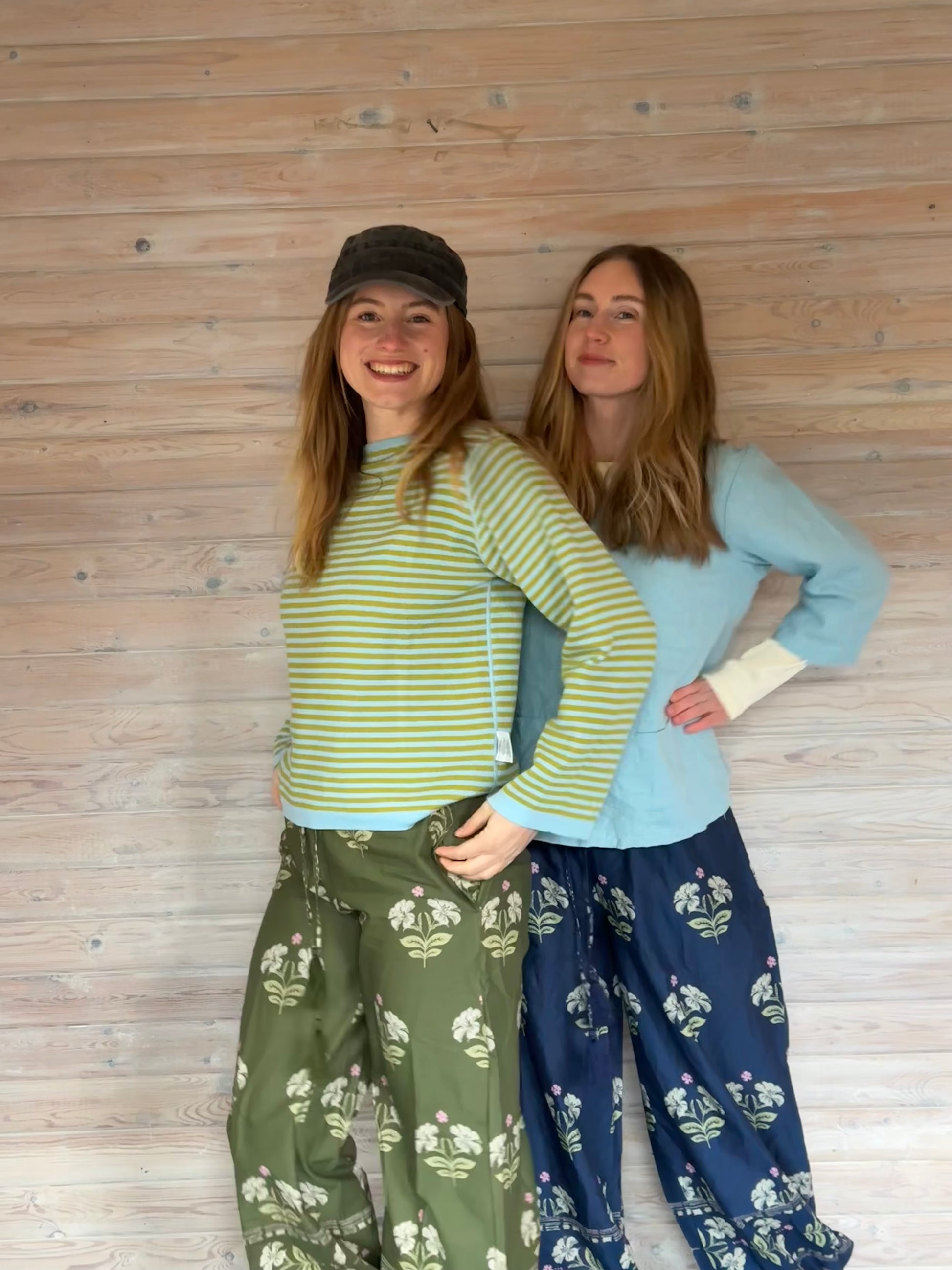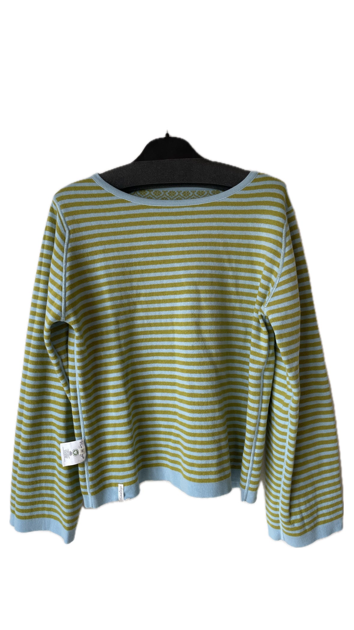 Meget bluse fra himalya i stribet grøn på den ene side, og grønt mønster på den anden.