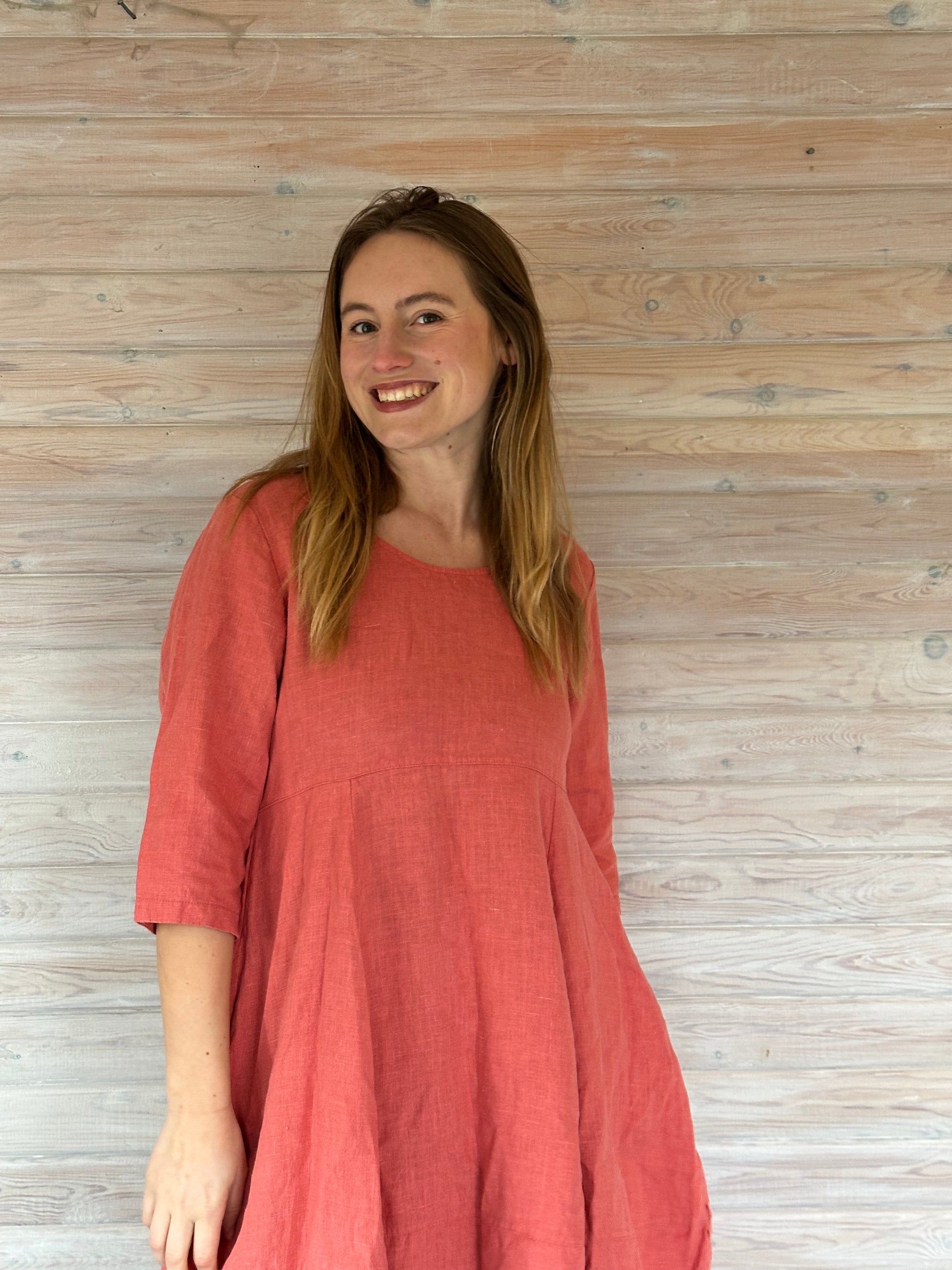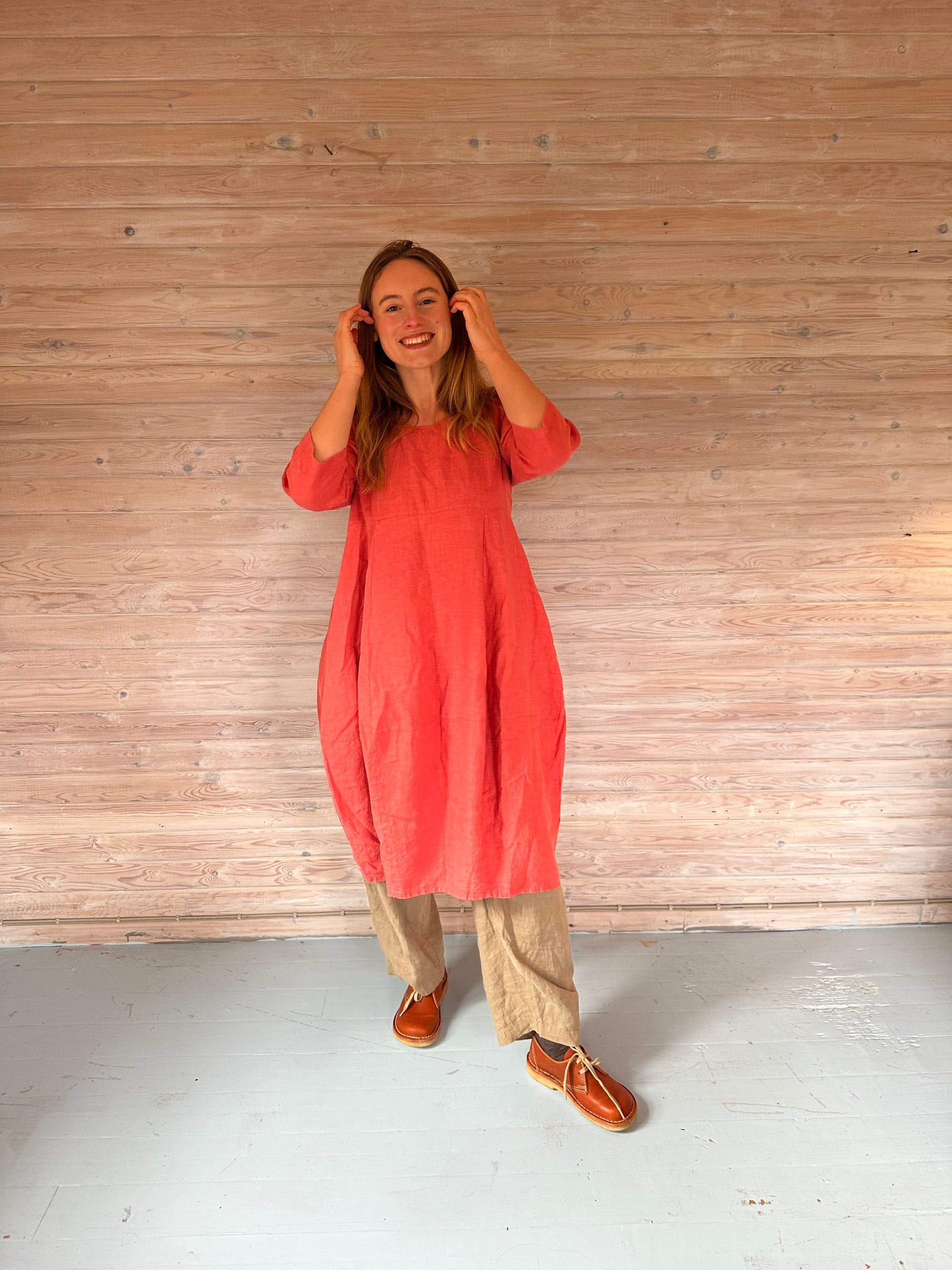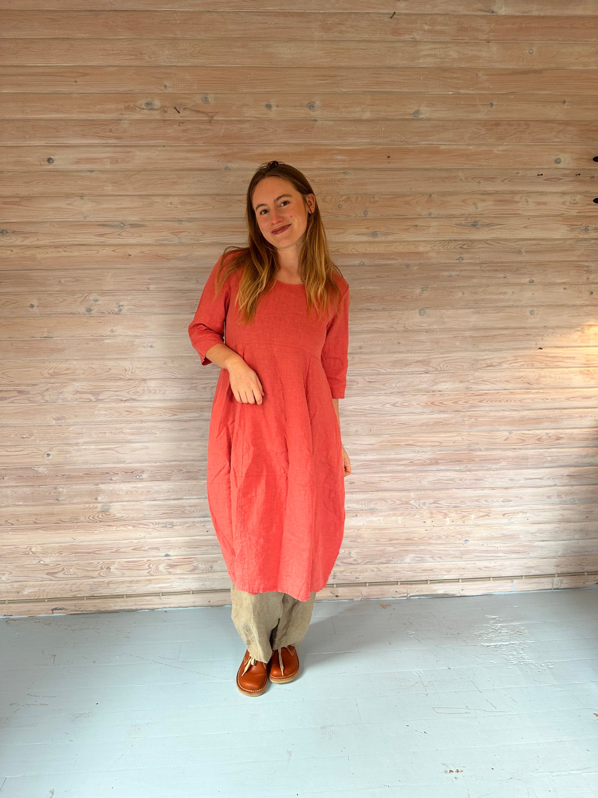 Rød ferskenfarvet ballon-kjole fra Thing
