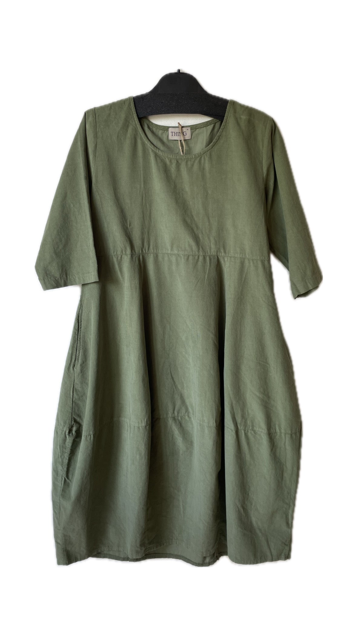 Smuk efterårskjole i babyfløjl fra THING i den skønne efterårsfarve Urtegrøn