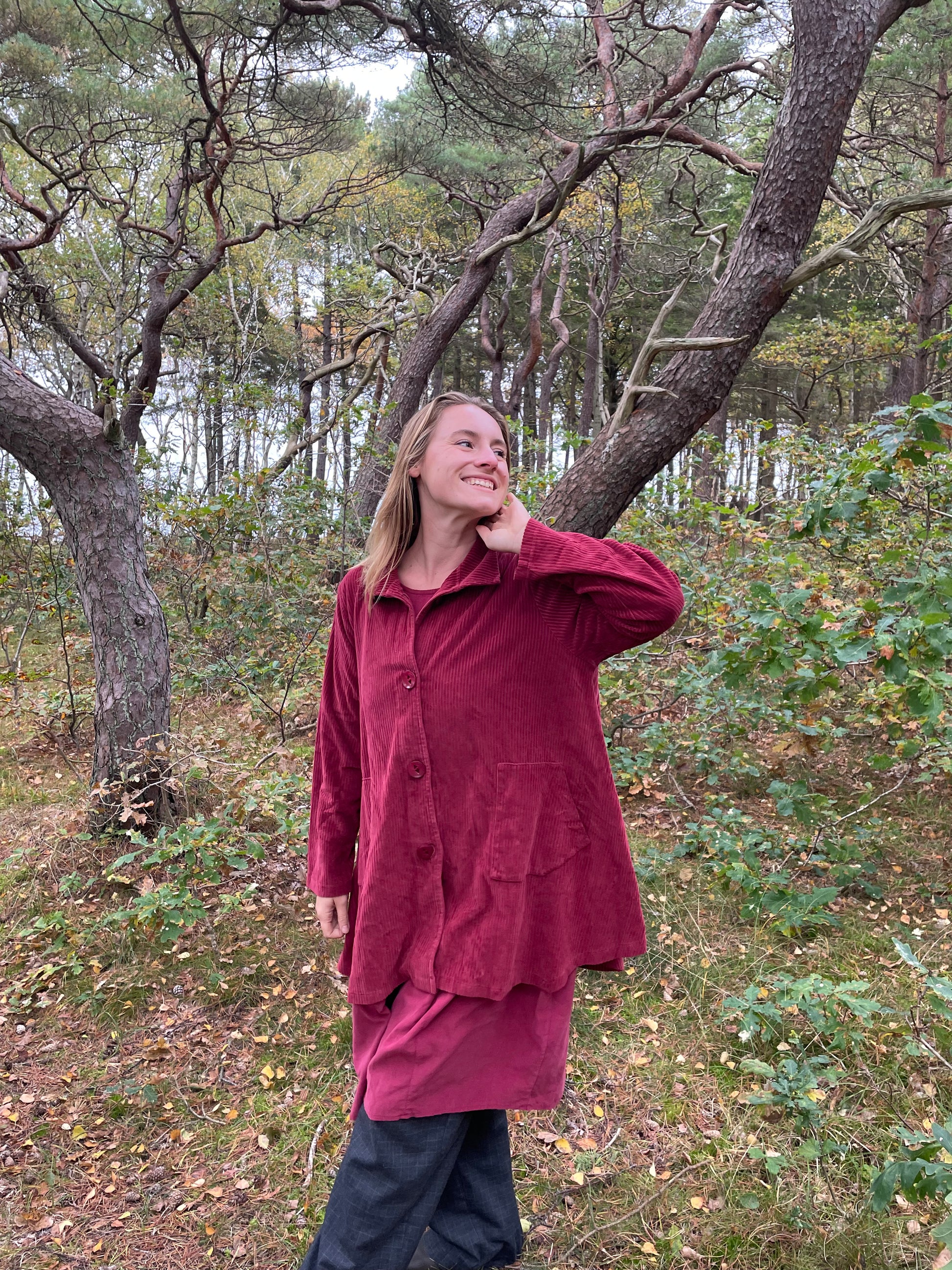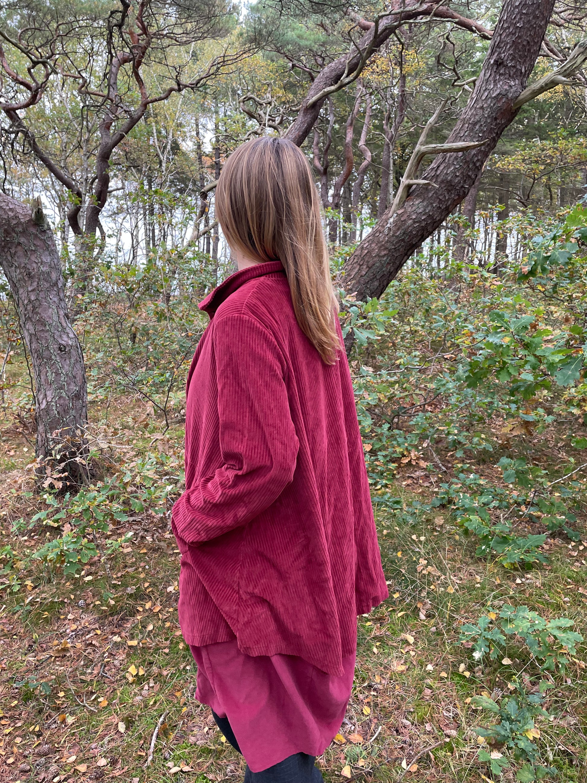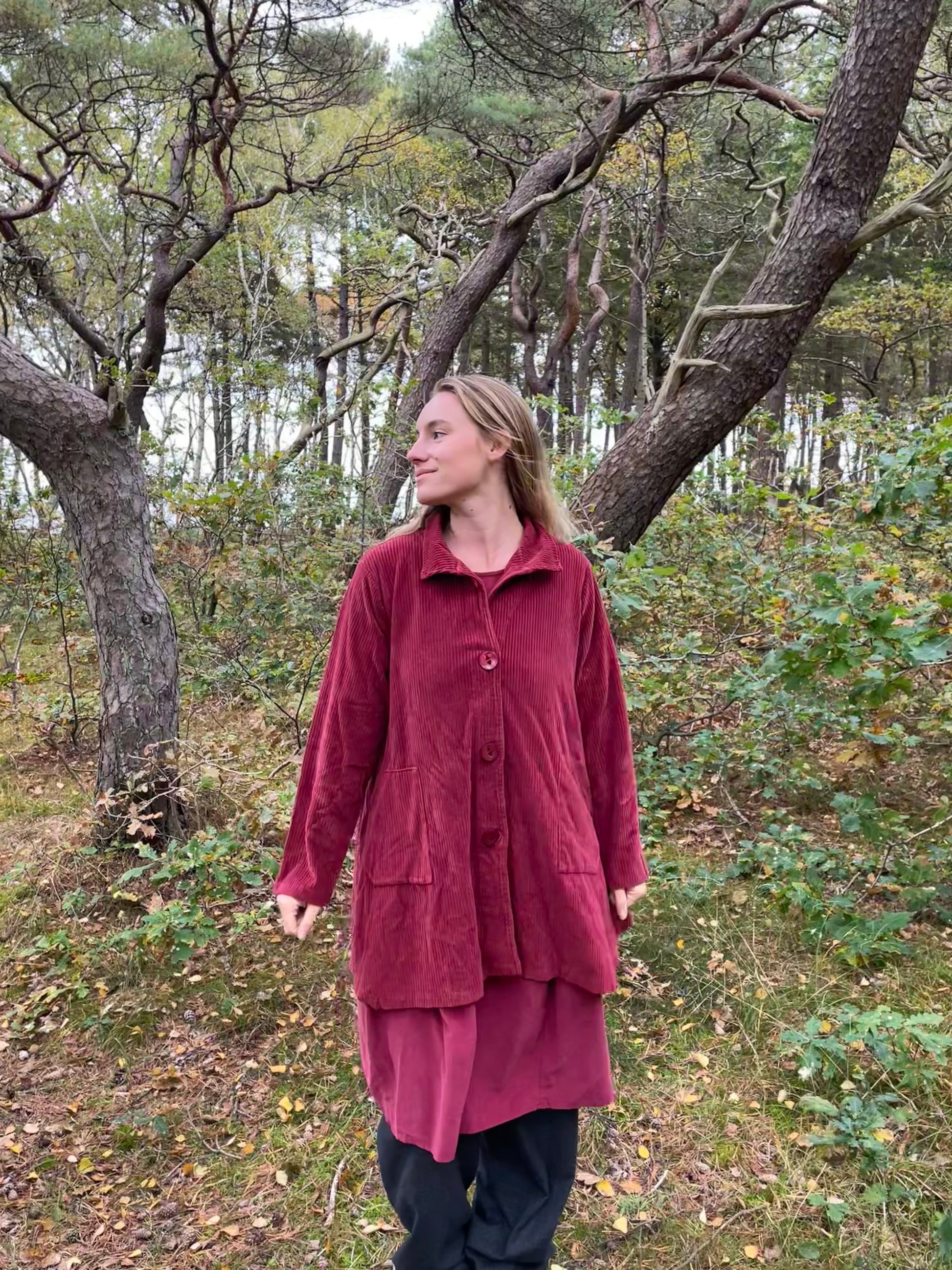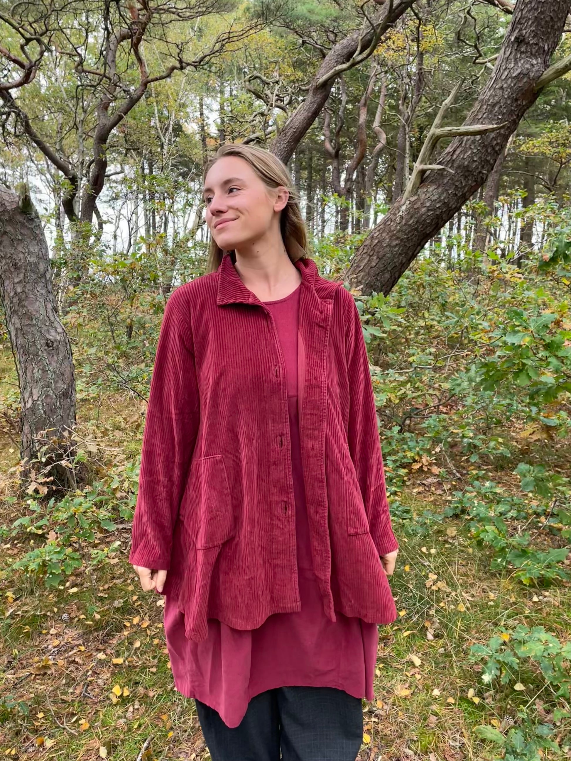 Smuk rød jakke i den flotte vinrøde efterårs-nuance fra THING i fløjl.